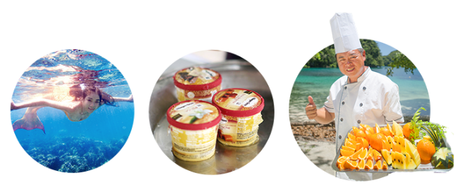上岛享用美食后,来到【蓝色珊瑚礁】(浮潜)这里是个美丽的珊瑚花园,水下生态保存丰富且完整,这片水域生长着大片的蓝色茂密的鹿角珊瑚,固以此著名,是近些年新发现的景点,海下有丰富的馒头海星、蓝指海星、甚至有比人的手臂还长的海参及其他特殊生物。游客在此处活动,只需放松身体,让海水轻推向前漂流,就能够欣赏到水道里美丽的景色。随后到最刺激的【鲨鱼城】(浮潜)全世界浮潜的地点就只有在这里才可以看到鲨鱼。体长两米无害不会攻击人的珊瑚礁鯊,就在您的底下穿梭觅食,前所未有的体验绝对令人叹为观止,而后在【干贝城】(浮潜)数十颗直径超过 1 公尺,重200公斤以上,寿命超过100年的砗磲贝安静的生长在水中。在其他国家只有潜水客可以偶遇的巨型砗磲贝在这里只需浮潜就能一览无遗。